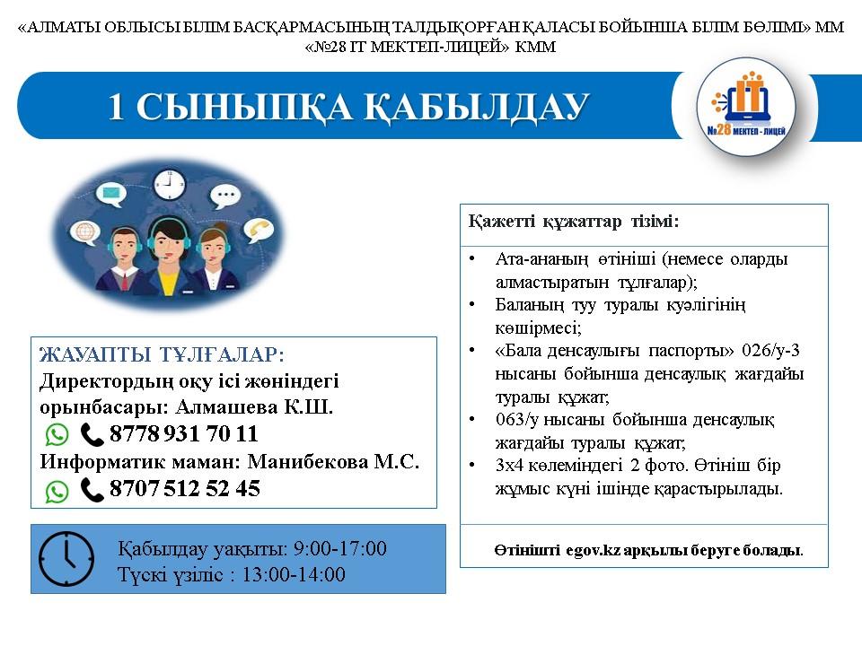 1 сыныпқа қабылдау бойынша жауапты мамандар