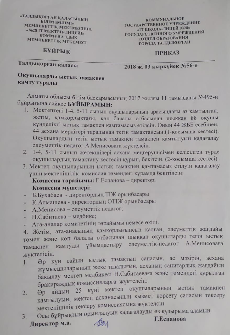 Тамақтандыруды ұйымдастыру жөнінде